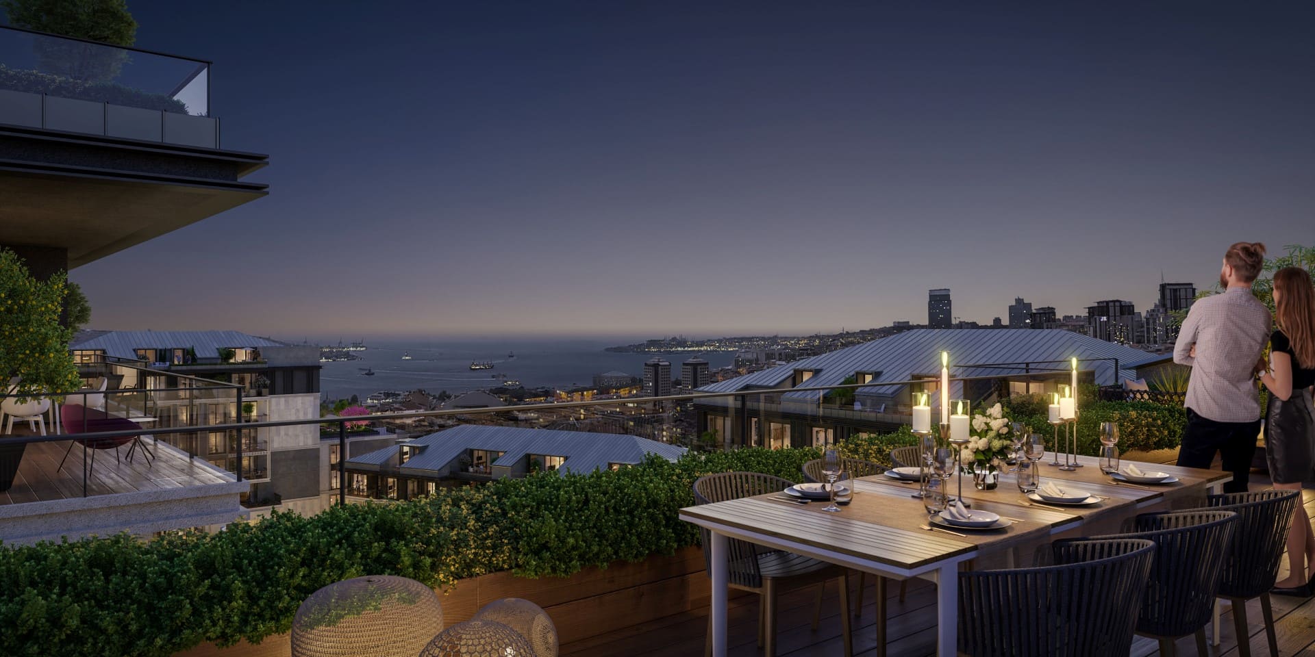 Личное открытое пространство с панорамными видами Босфора.